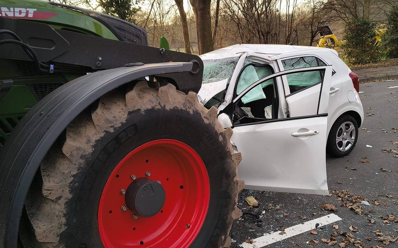 Tragischer Unfall in Kerpen: Eine Autofahrerin stirbt nach einem Frontalzusammenstoß mit einem Traktor auf der Dürener Straße zwischen Blatzheim und Bergerhausen. Rettungskräfte konnten nicht mehr helfen.