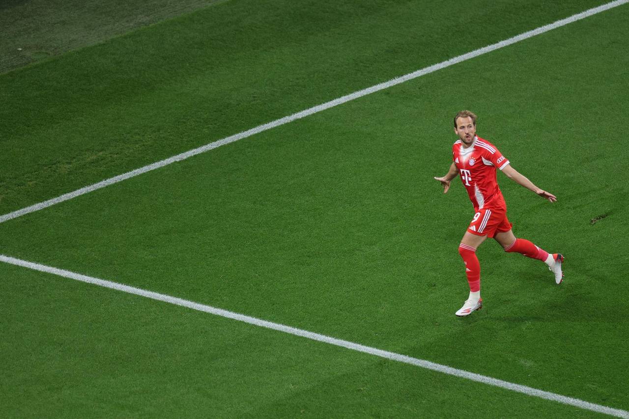 Leverkusen (dpa) - Torschütze Harry Kane schwenkte vor den Bayern-Fans die Jubelfaust, mit dem Klassiker von der Fahrt nach Berlin stimmten sich die Fans auf das DFB-Pokalfinale ein. Auch «Super-Bayern» und «Wir holen die Meisterschaft und den Europacup und den Pokal» skandierten die mitgereisten Anhänger nach dem 2:0 (1:0) des Rekordmeisters gegen Bayer Leverkusen. Drei Tage, nachdem der FC Bayern die 35. deutsche Meisterschaft perfekt gemacht hatte, zog die Mannschaft von Trainer Vincent Kompany ins Pokal-Finale ein.