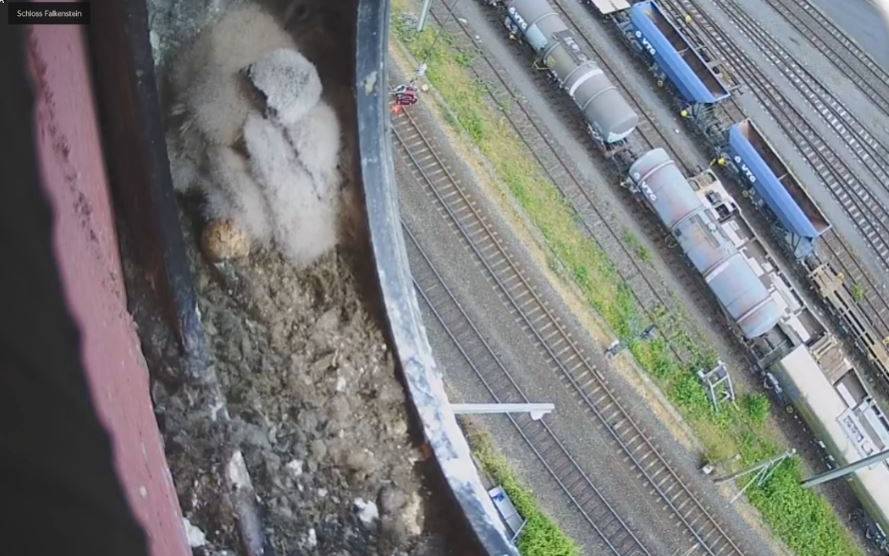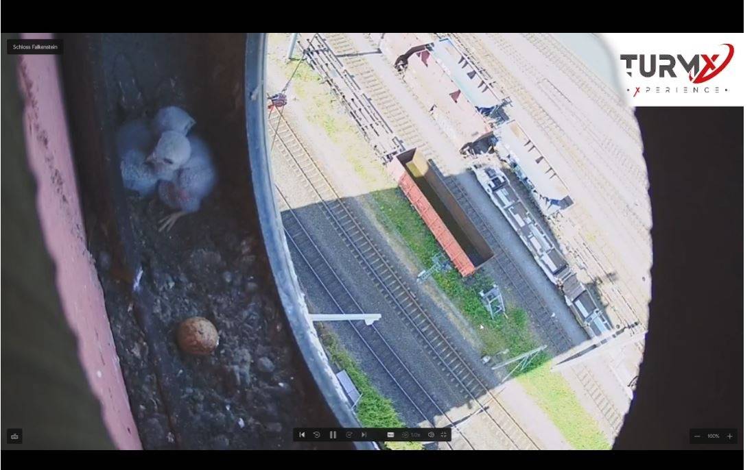 Am Brühler Kletterturm „Turmx“ nistet wieder ein Falkenpärchen. Und vor genau einer Woche (26.5) ist dort das erste kleine Falkenbaby geschlüpft, kurz darauf dann auch das Zweite. Das Turmfalken-Pärchen hat es sich in einem alten Reifen in 45 Metern Höhe gemütlich gemacht. Einschränkungen für die Kletterer gibt es durch die brütenden Falken nicht. Die Betreiber des Kletterturms haben die Nistplätze extra mit genügend Abstand zu dem Klettersteig gehängt. Wer die Falkenfamilie beobachten will, kann die Falken hier auf der Live-Webcam verfolgen.