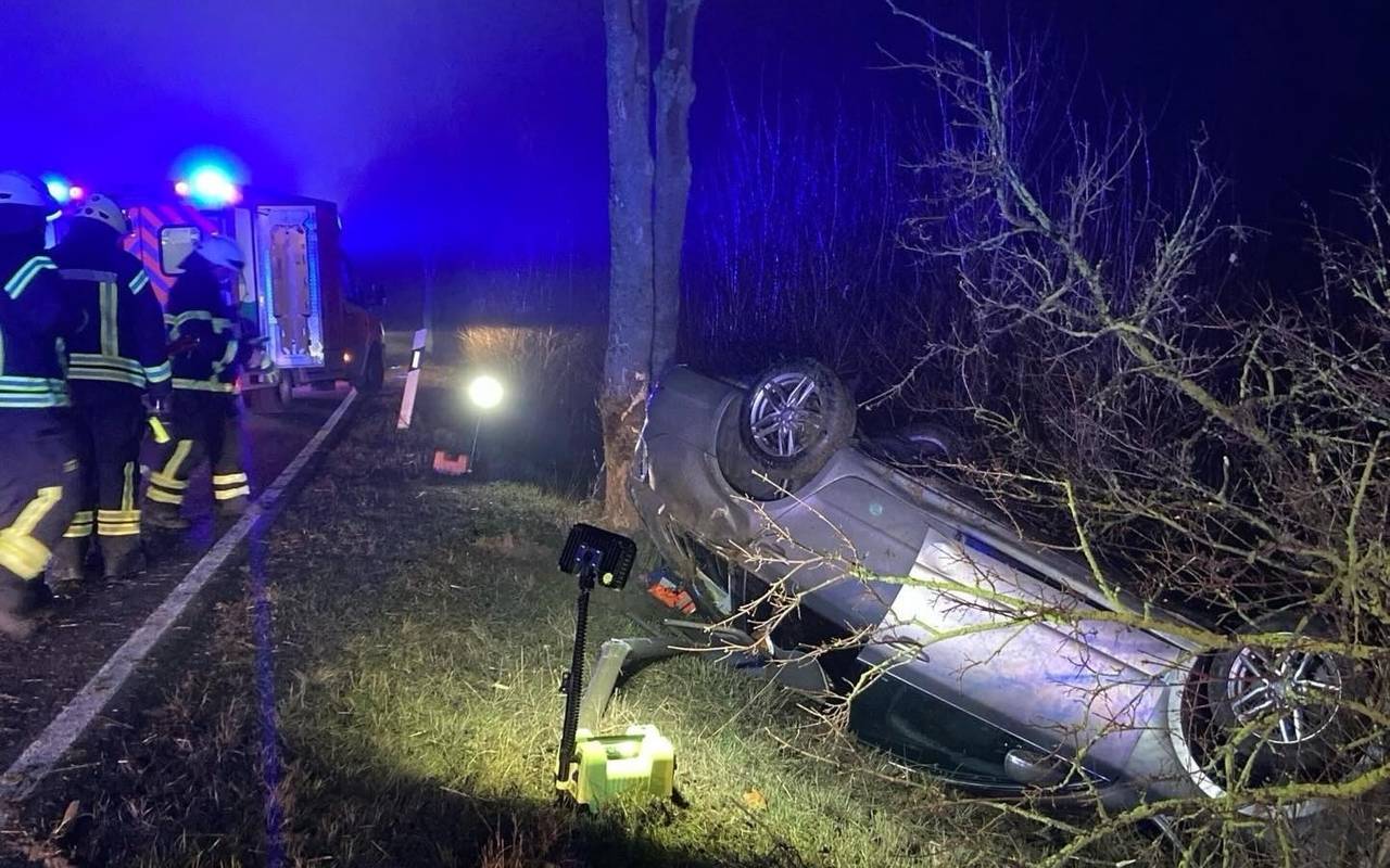 Ein Feuerwehrmann hat am frühen onntagmorgen dem Heimweg ein Auto im Straßengraben entdeckt. Der Wagen lag auf dem Dach.