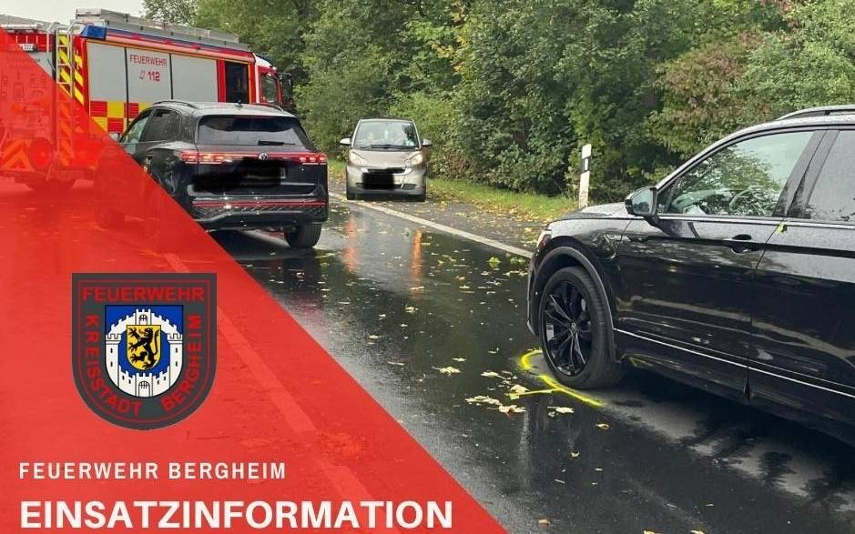 Großeinsatz für die Bergheimer Feuerwehr. Bei einem Verkehrsunfall ist am Samstag (4. Oktober) in Kenten eine Familie mit zwei kleinen Kindern verletzt worden. Auch zwei weitere junge Autofahrer mussten vor Ort vom Notarzt behandelt werden.