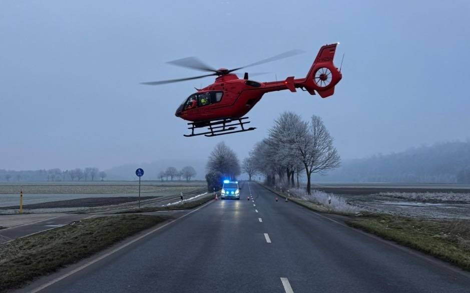 Zwei Verletze nach Unfall in Bergheim - Rettungshubschrauber im Einsatz