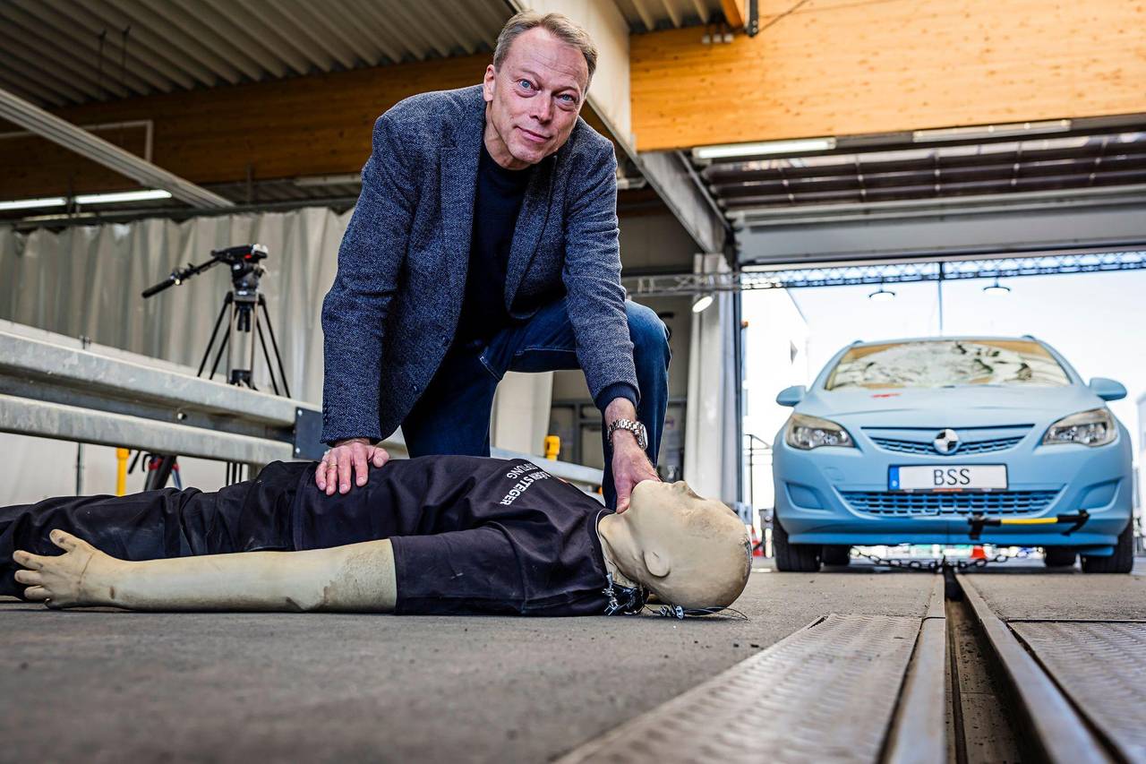 «Was wir hier haben sind schwerste Kopfverletzungen, viele Knochenbrüche, wahrscheinlich auch ein Genickbruch», sagt Siegfried Brockmann. Der Leiter der Unfallforschung bei der Björn Steiger Stiftung hat sich nach der Kollision über die zerschrammte Puppe gebeugt und stellt fest: Ein Fußgänger hätte wohl keine Chance gehabt.