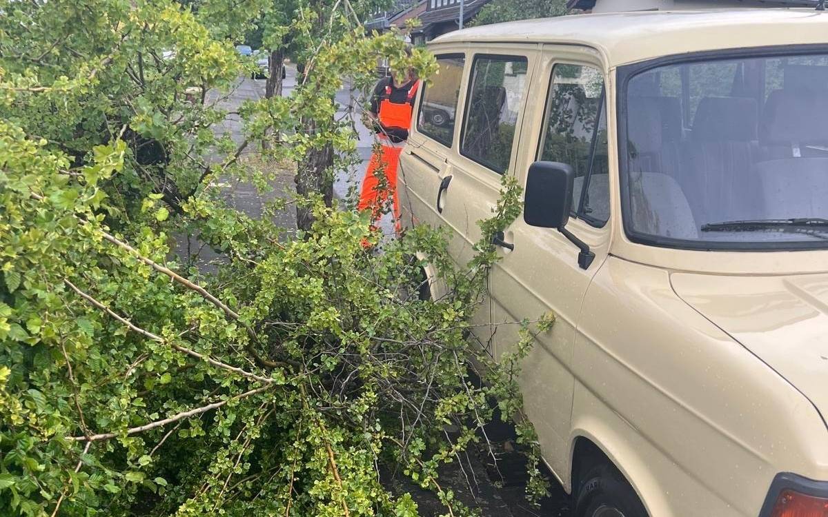 Eine erste Gewitterzelle gab es schon über Bergheim. Am Nachmittag sind hier einige Bäume durch Orkanböen umgestürzt. Insgesamt musste die Feuerwehr zu 15 wetterbedingten Einsätzen ausrücken.