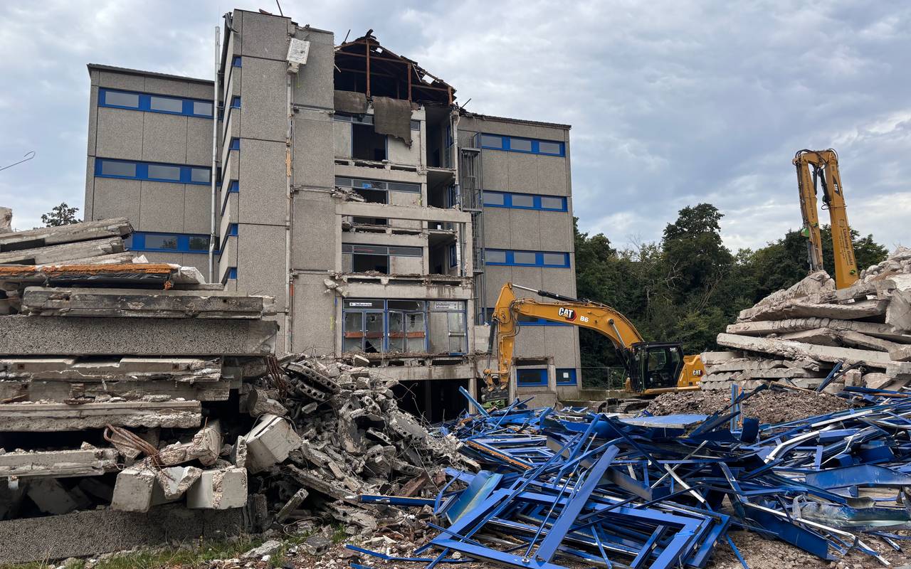 Derzeit wird der oberirdische Teil abgebrochen, sagt Projektleiterin Nina Kuhn. Das wird nach ihren Angaben rund drei Wochen bis zum Ende der Sommerferien dauern. Danach sind die unterirdischen Fundamente an der Reihe. Dann soll das Abbruchmaterial sortiert und in Einzelteile zerlegt werden. Dieses Material wird dann in Richtung Deponien abtransportiert oder direkt vor Ort wiederverwertet. Derzeit liegen die Arbeiten der Stadt gut im Zeitplan. Nach den Abrissarbeiten soll dann der Neubau des Gymnasiums beginnen. Die Stadt rechnet nach derzeitigem Stand damit, dass zu Beginn des Schuljahres 2027/28 alles fertig ist und die neue Schule an den Start gehen kann. Die Kosten für den Neubau liegen laut Stadt bei rund 50 Millionen Euro.