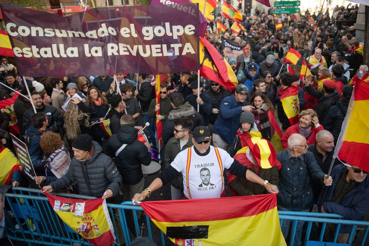 Die Kundgebung fand auf der Esplanade vor dem Debod-Tempel im Stadtzentrum unter dem Motto «Mafia oder Demokratie?» statt. Viele trugen Spanien-Flaggen und Plakate mit Aufschriften wie «Rücktritt sofort!» und «Sánchez geh weg!». Die PP sprach von rund 80 000 Teilnehmern. Das Innenministerium schätzte die Zahl jedoch auf etwa die Hälfte. Die letzte ähnlich große Kundgebung gegen Sánchez hatte es in Madrid im Juni gegeben.