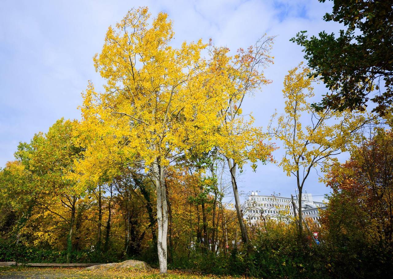 Zitterpappeln stehen an einem Parkplatz. Die Zitterpappel ist Baum des Jahres 2026. © Julian Stratenschulte/dpa